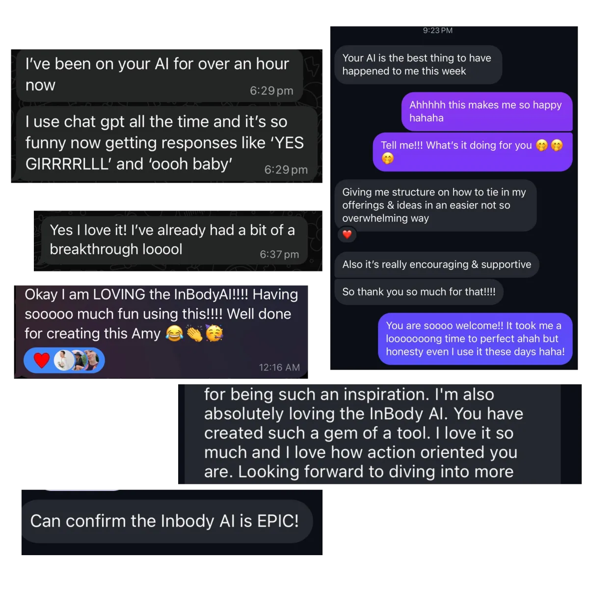 I’ve been building and refining this for a long time, I've spent the last 5 months trialing it with 1-1 clients, and people in my close spaces, slowly opening it up more and more, and every time I get the most incredible feedback with how supportive and powerful it feels to have someone in your corner whenever you need them. I know how it feels to want that mentoring and someone to sound board off of, but maybe now isn't the right time, or maybe you've always outsourced your power and you're looking for more self leadership... This is why I built InBodyAI
